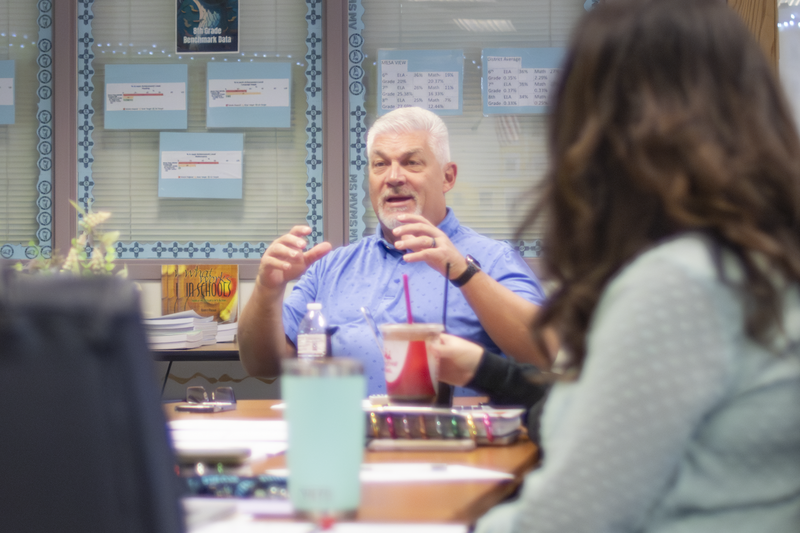 Our week began in Mesa View’s revamped data room, a space that has undergone a remarkable transformation since the start of the school year. The room has now become a vibrant celebration space, adorned with string lights, portraits of all 453 students, and the thoughtful message on the window: “The Future of Our World is in this Room.”