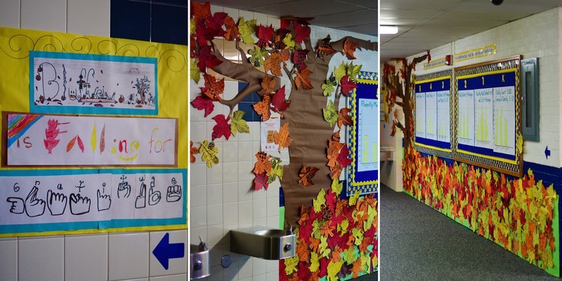 In November, seven 5th-graders created a sign that displayed the message: “Bluffview is falling for gratitude.” The themes were autumn and appreciation, including the sign language letters for gratitude.