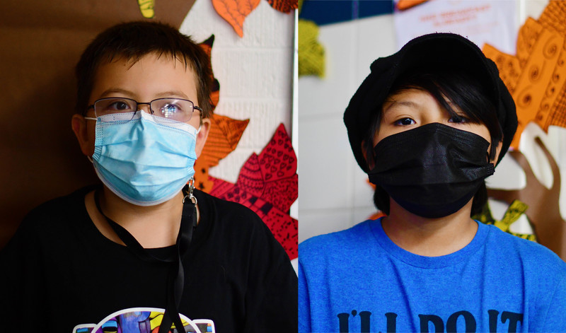 Julian Smiley (left), Drake Henio (right), and Preston Nez (not in the picture) created the main gratitude design. Sign language was also added to the artwork, thanks to Ms. Carlson, who has been teaching sign language to the students at Bluffview Elementary.
