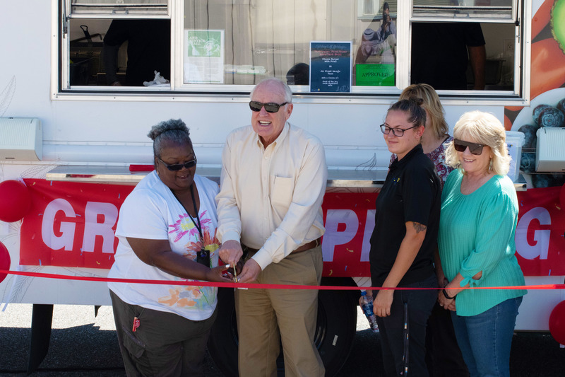 In the photo: FMS Chief of Operations Ted Lasiewicz cuts the ribbon for today’s unveiling of the FMS Food Truck. Present were the RHS Principal Bruce Hatch, the faculty of RHS, and members of the FMS Transportation Department.
