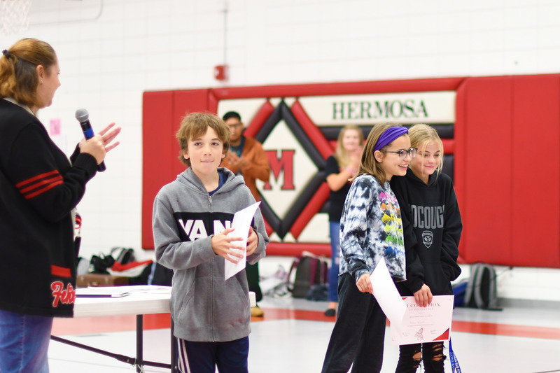 Hermosa Middle School celebrated students by recognizing them today during several assemblies throughout the morning. One by one, the students were called to receive a certificate for “Awesome Attitude,” “Most Helpful,” “Most Improved,” the “Manner Award” and the “Above and Beyond Award.”