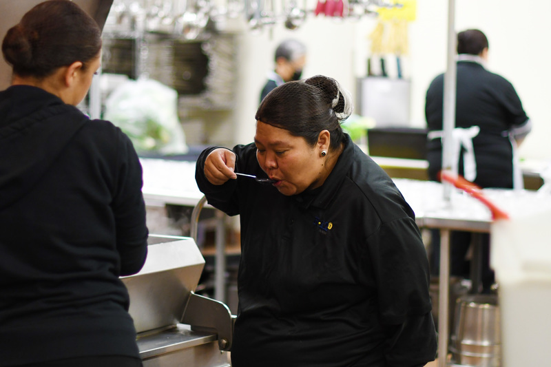 Tibbetts Site Supervisor Myra Slim tastes the Blue Corn Mush to make sure it's ready to be served.