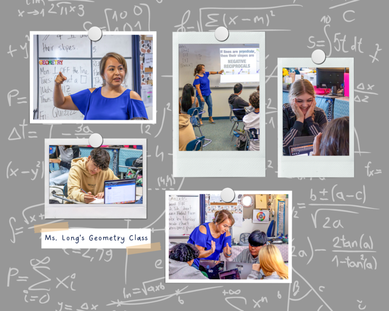 In the photos: Last week, Ms. Long’s geometry class was learning how to find the multiplicative inverse of a number or the reciprocal. Ms. Long used an online quiz format that allows students to answer questions independently. Then, she reviewed their answers to see where students excelled and where they might need some additional practice. Ms. Long does a fantastic job encouraging her students and connecting with them as they work through their math lessons.