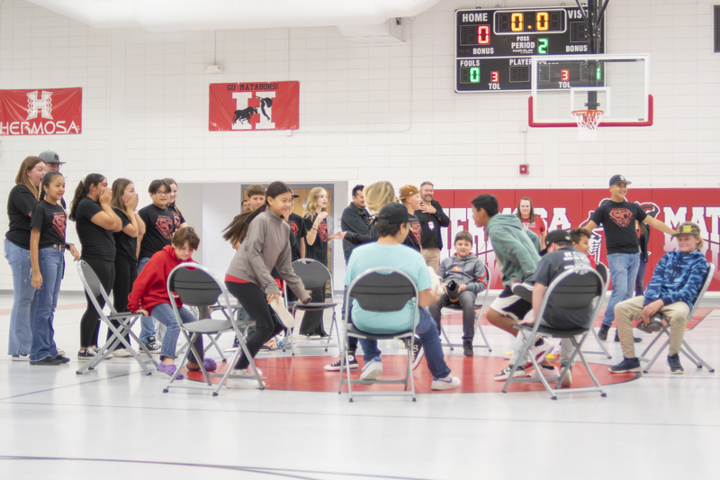 Each teacher at the school chose five students to be part of this celebration. It all started with the Hermosa Student Council giving these students a big round of applause as they walked into the gym. The event concluded with a fun game of musical chairs, where everyone joined in by either playing or sharing their bracelet, sweater, or shoe with a friend.